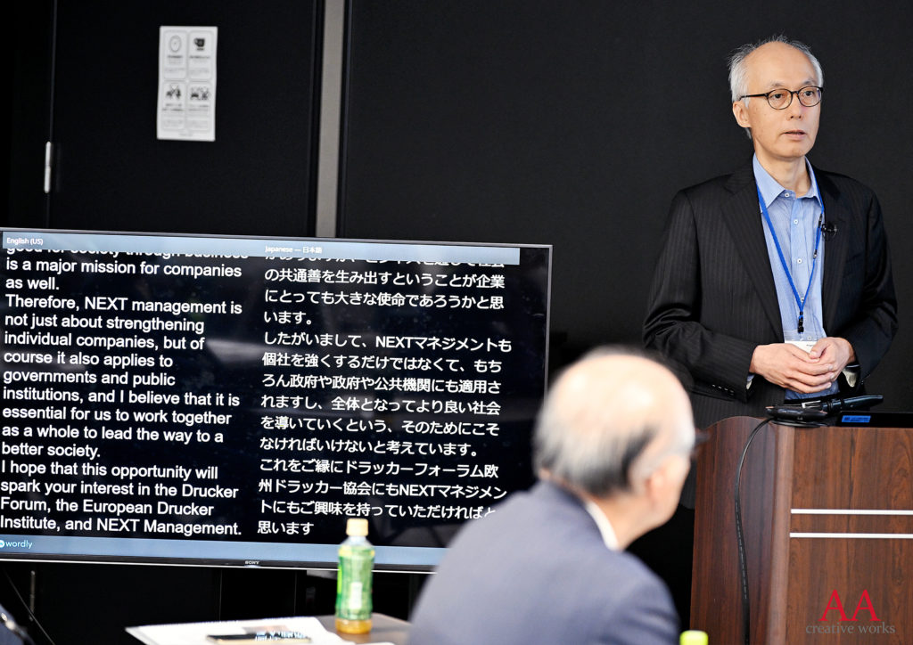 そもそも、なぜ今“ドラッカー”なのか。式典の冒頭、欧州ドラッカー協会アンバサダーの高重吉邦氏は、毎年ウィーンで開催される「ドラッカー・フォーラム」が、単にピーター・ドラッカーの教えを学ぶ場ではなく、「世界トップクラスの思想家や経営者が集い、未来のマネジメントを議論し創造する場」であることを紹介した。
